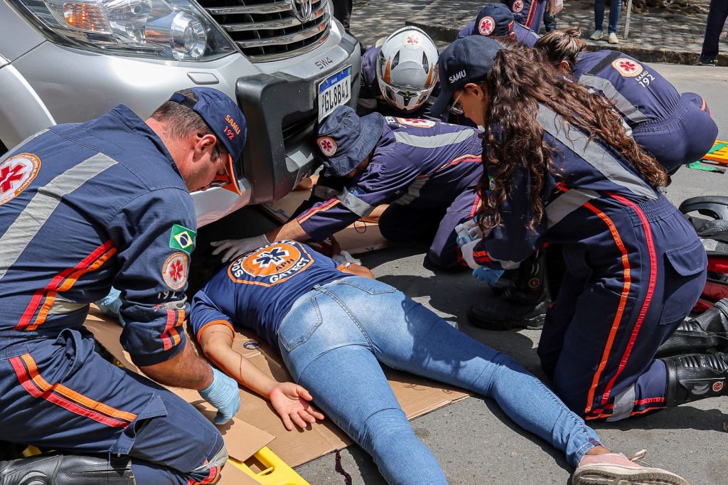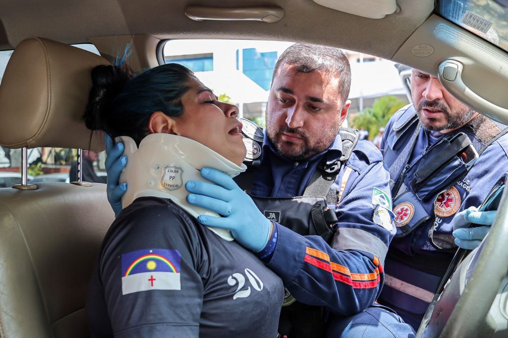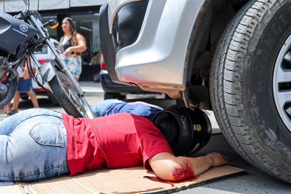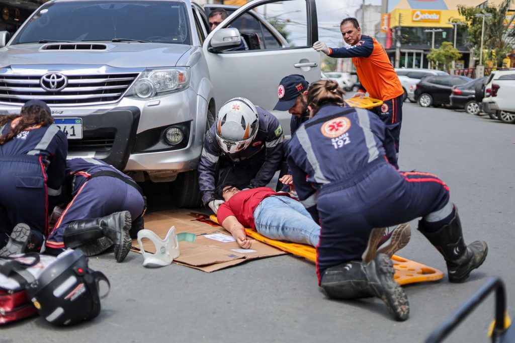 Um dos pontos de maior impacto foi a simulação realista de um sinistro de trânsito envolvendo uma motocicleta e um automóvel, que demonstrou os riscos da imprudência no trânsito. A encenação contou com a atuação da Guarda Civil Municipal e do SAMU, que mostraram como é feita a resposta em situações emergenciais. A ação reforçou a importância da prevenção, diante do dado alarmante de que, somente no Brasil, 92 pessoas morrem todos os dias em acidentes de trânsito.