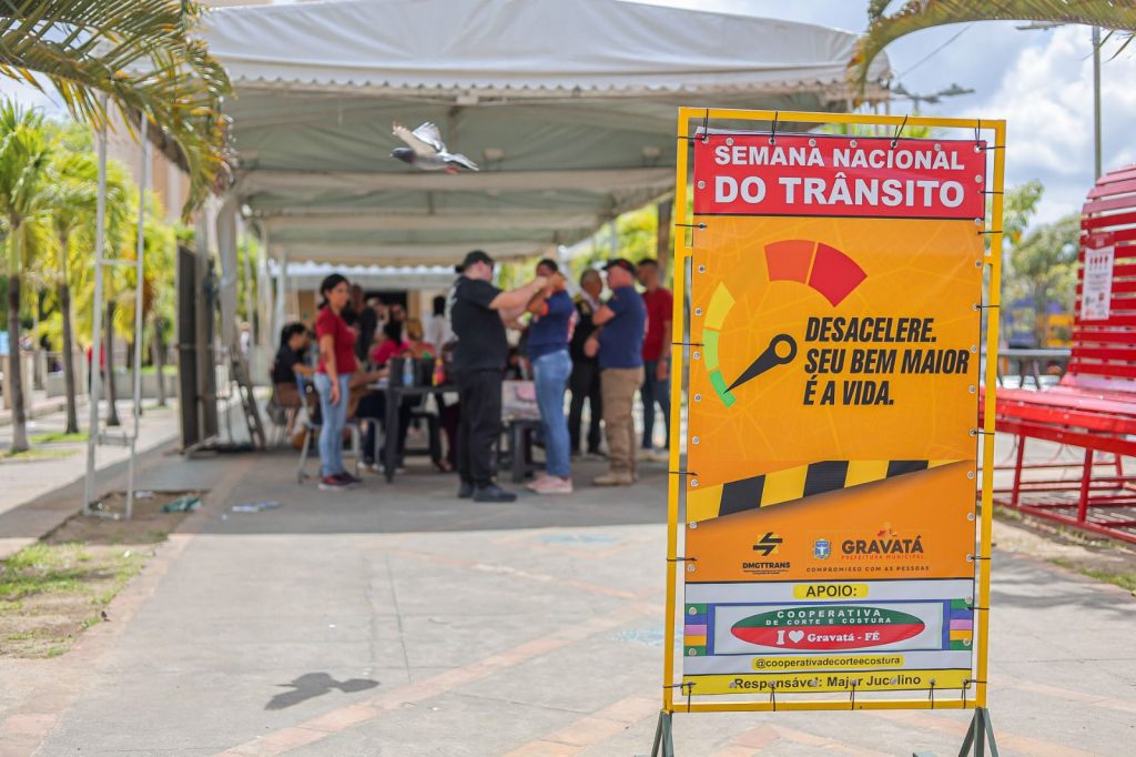 Na manhã da terça-feira (23), a Prefeitura de Gravatá, por meio do Departamento Municipal Gravataense de Trânsito e Transportes (DMGTTRANS) e da Secretaria de Saúde, realizou uma ação alusiva à Semana Nacional do Trânsito na Praça da Matriz. Durante a programação, foram oferecidos serviços como emissão de cartões de estacionamento para idosos e pessoas com deficiência, aferição de pressão arterial e sinais vitais, além de atividades de orientação à população.