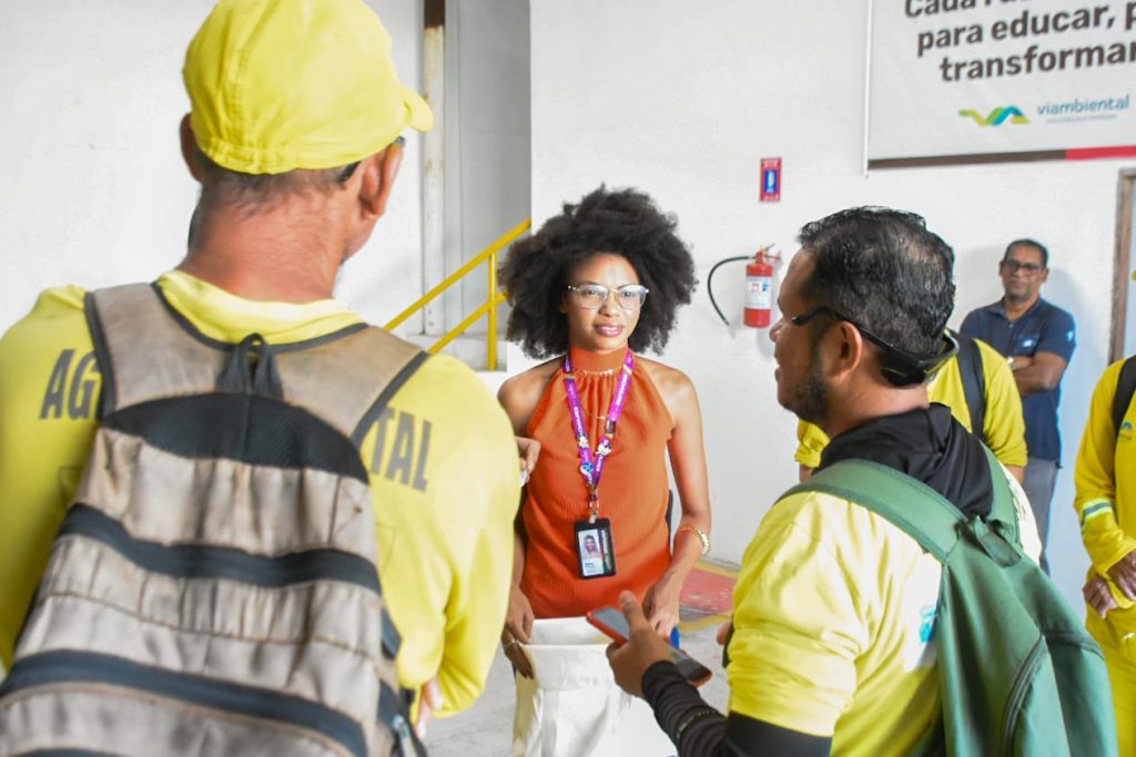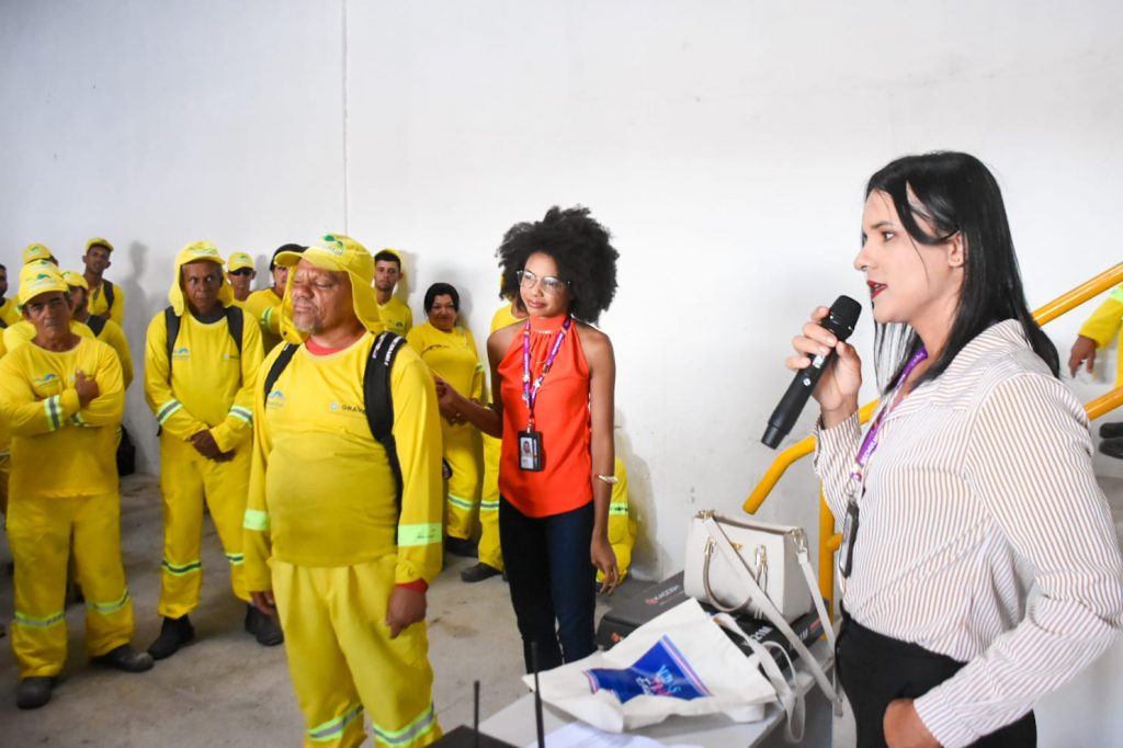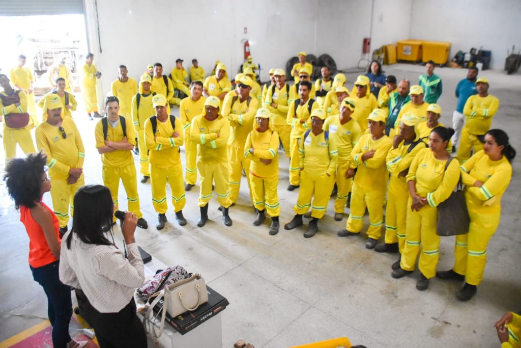 O tema da formação foi “Coletando respeito”, ministrada por Alana Sena, diretora de núcleo LGBT na Secretaria da Mulher, e Joyce Melissa, diretora de Promoção de Igualdade Racial da mesma pasta. De acordo com Alana, “nós identificamos a necessidade de oferecer essa formação aos profissionais da coleta, pois eles lidam diretamente com o público e enfrentam discriminação. Queremos promover respeito e ampliar a consciência sobre preconceitos, incluindo questões raciais e LGBT. Reconhecemos que esses trabalhadores também sofrem ofensas pela desvalorização de sua função. Entendemos que essa realidade se conecta às discriminações vividas por outros grupos sociais. Por isso, buscamos orientar, apoiar e conscientizar esses profissionais para lidarem melhor com essas situações no dia a dia”.