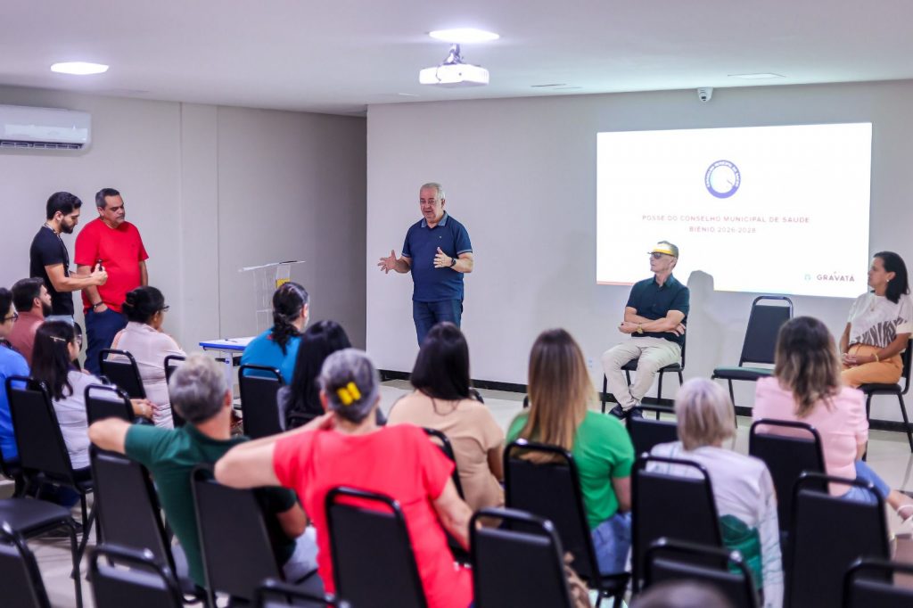 A Prefeitura de Gravatá realizou, na manhã da segunda-feira (13), a solenidade de posse dos novos conselheiros do Conselho Municipal de Saúde, que atuarão no biênio 2026-2028. O evento aconteceu no auditório do IPSEG e contou com a presença do prefeito Joselito Gomes, além das secretárias de Saúde, Viviane Salgado, e de Governo, Sheila Cartaxo. A composição do conselho contempla representantes dos segmentos gestor/prestador, trabalhadores e usuários para fortalecer a participação democrática nas decisões da área.