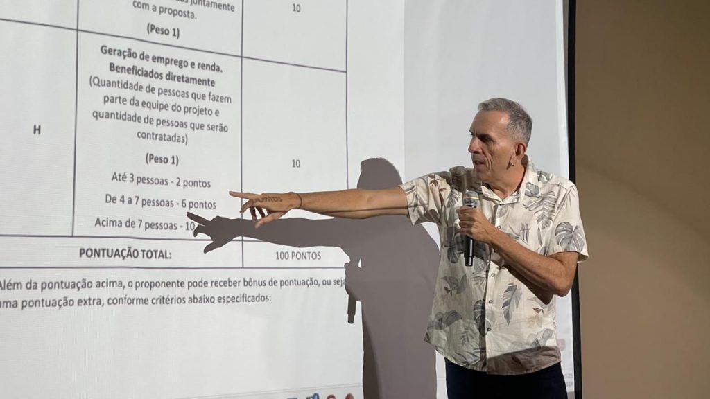 Durante o encontro, os participantes receberam orientações práticas sobre a elaboração de projetos culturais, organização de propostas e requisitos essenciais para inscrição em editais de fomento. Também foram apresentadas informações sobre a Política Nacional Aldir Blanc (PNAB), que está com inscrições abertas até o dia 17 de abril de 2026, com edital disponível no site oficial da Prefeitura.