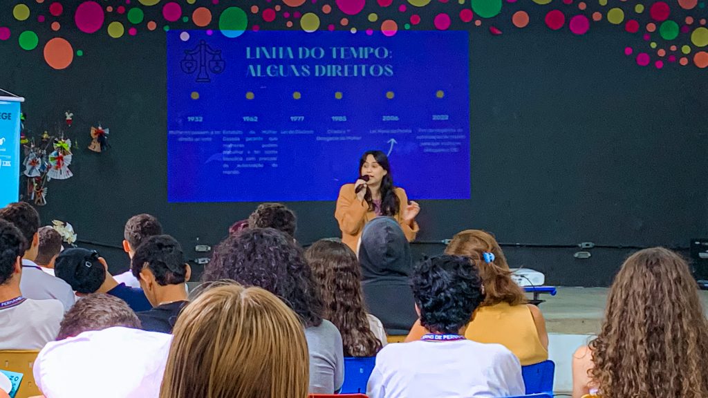 A EREM Cleto Campelo sediou, na quarta-feira (03), uma ação alusiva aos 21 Dias de Ativismo – Homens pelo Fim da Violência Contra a Mulher, com os estudantes em uma programação de conscientização. A iniciativa contou com palestras e dinâmicas educativas conduzidas pela Coordenadoria da Mulher do Tribunal de Justiça de Pernambuco (TJPE), que levou ao encontro especialistas da área, das quais a desembargadora e coordenadora Daisy Pereira. Também estiveram presentes a secretária da Mulher de Gravatá, Ester Gomes, a executiva da pasta, Gleizy Gueiros, e a procuradora-geral do Município, Jacyara Medeiros.