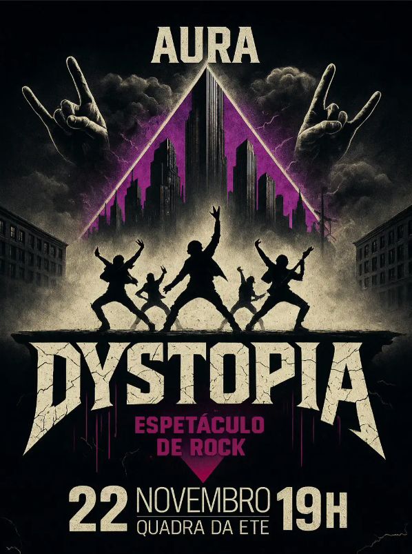 A Escola de Dança Aura apresenta, no dia 22 de novembro, às 19h, na quadra da Escola Técnica Estadual (ETE), o espetáculo “Dystopia”, uma produção que une dança urbana e rock em uma reflexão sobre o mundo contemporâneo. Dirigido pelo professor Edson de Lima Bezerra Júnior, o espetáculo promete uma experiência intensa, com performances cheias de atitude, energia e significado artístico.