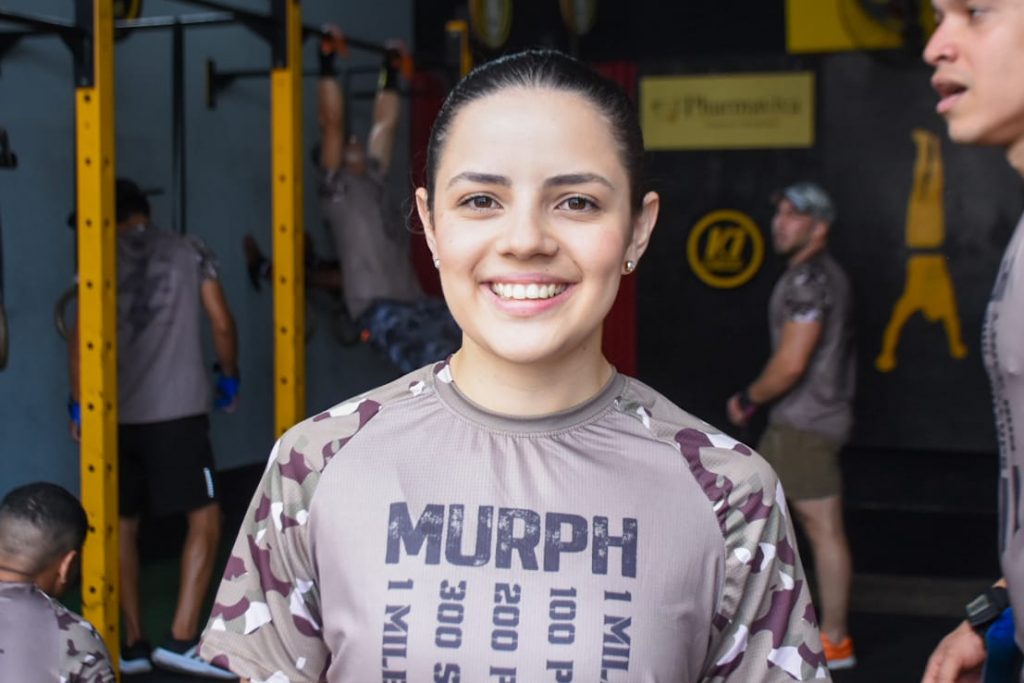 Bruna Melo, nutricionista, mora no bairro Boa Vista e pratica o CrossFit há 4 anos. “O crossfit foi o tipo de treino que me fez ter constância realmente, porque antes eu fazia musculação, mas eu não conseguia ter constância, eu não conseguia vir todos os dias e o Cross em si me fez vir diariamente treinar. Então eu gosto bastante do Murph, ele é um treino maior, desafiador, então faz com que a gente sinta essa questão de superação realmente, isso é muito bom pra gente enquanto atleta. Não somos atletas profissionais, mas a gente se sente instigado a continuar e a se desafiar. Eu acho que tem muito preconceito com o cross, porque as pessoas falam da questão de lesão, mas tem pessoas que são iniciantes, intermediárias e a gente vai avançando. Ninguém começa aqui pegando a maior carga, nem fazendo os movimentos mais complexos. A gente começa aqui da forma mais simples e a pessoa vai melhorando e progredindo com o tempo”.
