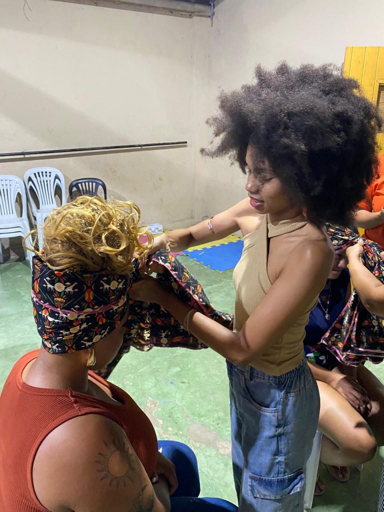 Segundo Joyce Melissa, a oficina foi construída em dois momentos complementares. “Iniciamos com o contexto histórico e a importância do turbante na valorização da cultura africana e afro-brasileira e sua simbologia espiritual. Depois fomos para a prática do turbante e conversamos um pouco sobre o que cada turbante representa”.
