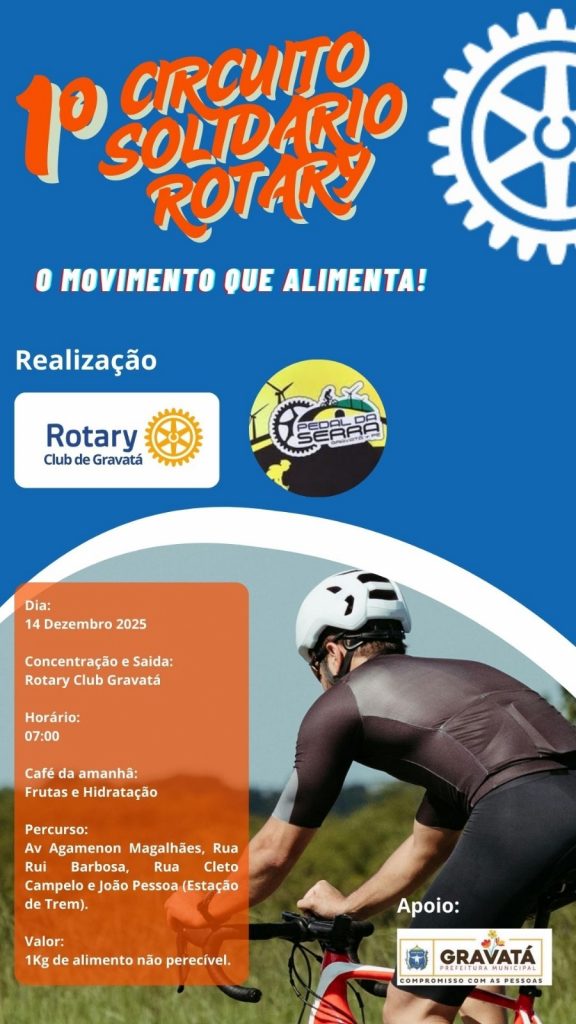 A Prefeitura de Gravatá é parceira do 1º Circuito Solidário do Rotary, iniciativa promovida pelo Rotary Club de Gravatá em colaboração com o grupo Pedal da Serra.