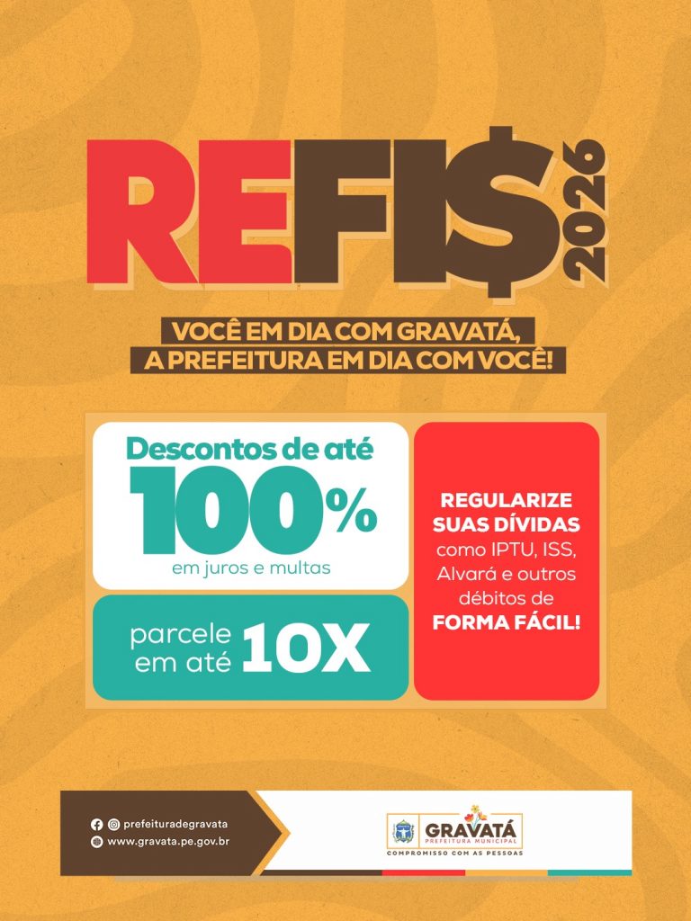 A Prefeitura de Gravatá sancionou a Lei nº 4.011/2026, que institui o Programa de Recuperação Fiscal (REFIS 2026), oferecendo condições facilitadas para que contribuintes regularizem débitos tributários e não tributários vencidos até 31 de dezembro de 2025. A iniciativa também contempla taxas dos mercados públicos e abrange dívidas ajuizadas ou não.