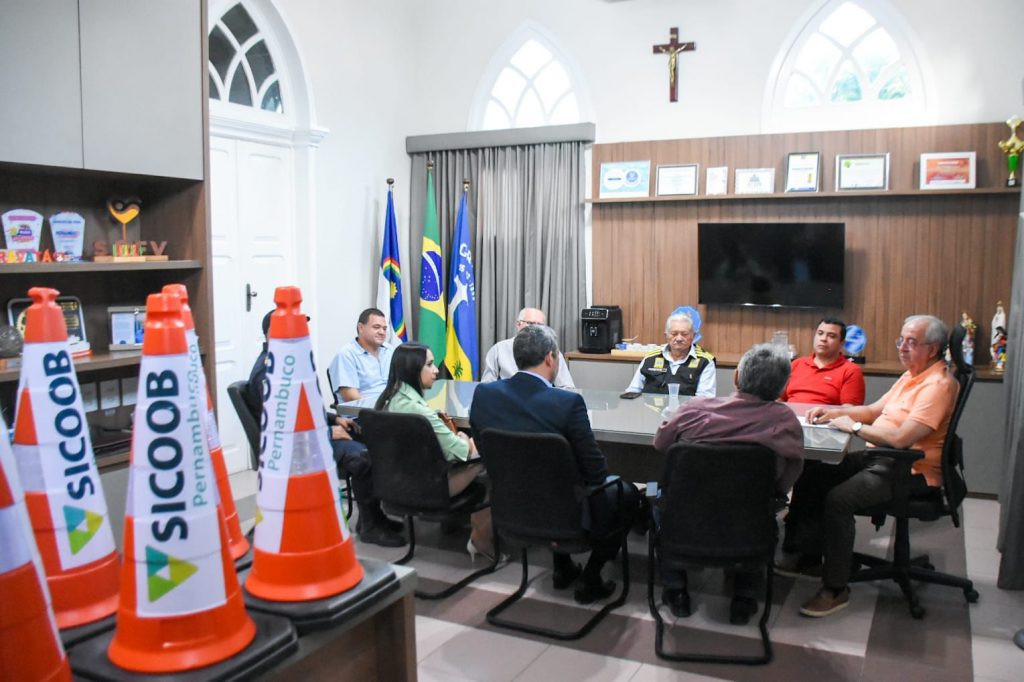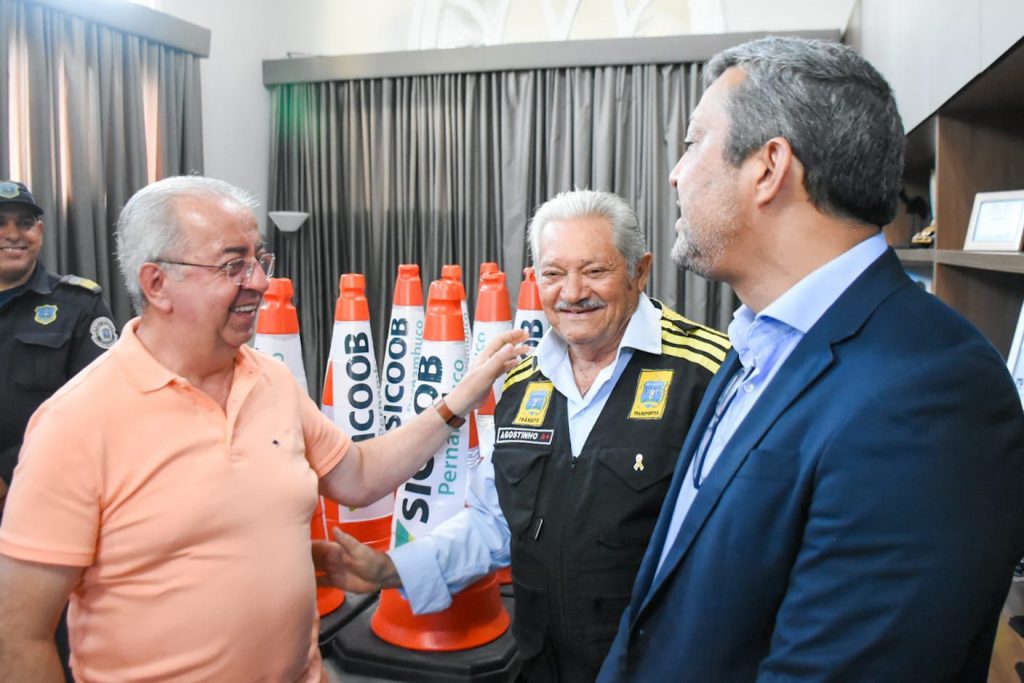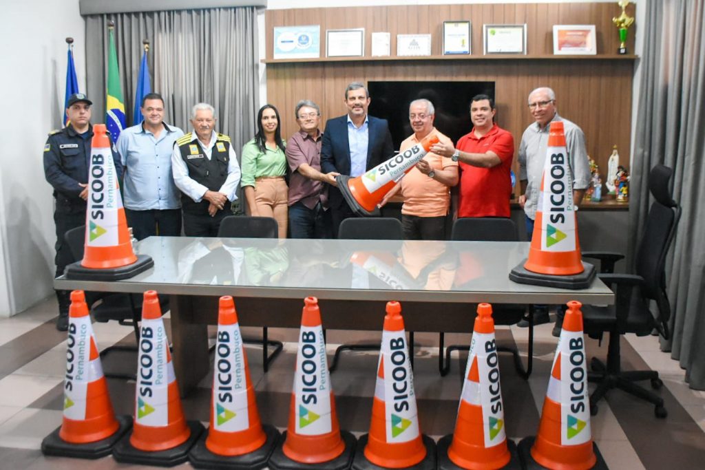 O município de Gravatá recebeu, na tarde da quarta-feira (03), a doação de 40 cones de sinalização do Sicoob, em uma ação que busca contribuir para a organização e segurança no trânsito local. A entrega ocorreu no gabinete do prefeito Joselito Gomes e contou com a presença do vice-prefeito João Paulo de Lemos; do gerente regional Agreste do Sicoob, Vinícius Aragão; da gerente da agência de Gravatá, Edjane Lima; além do secretário de Indústria e Comércio, Zeca da Charque; do secretário de Segurança e Defesa Civil, Gilmar Oliveira; do diretor do DMGTTRANS, José Agostinho; do secretário executivo de Indústria e Comércio, Josias Teles; e do comandante da Guarda Civil Municipal, André Paiva.